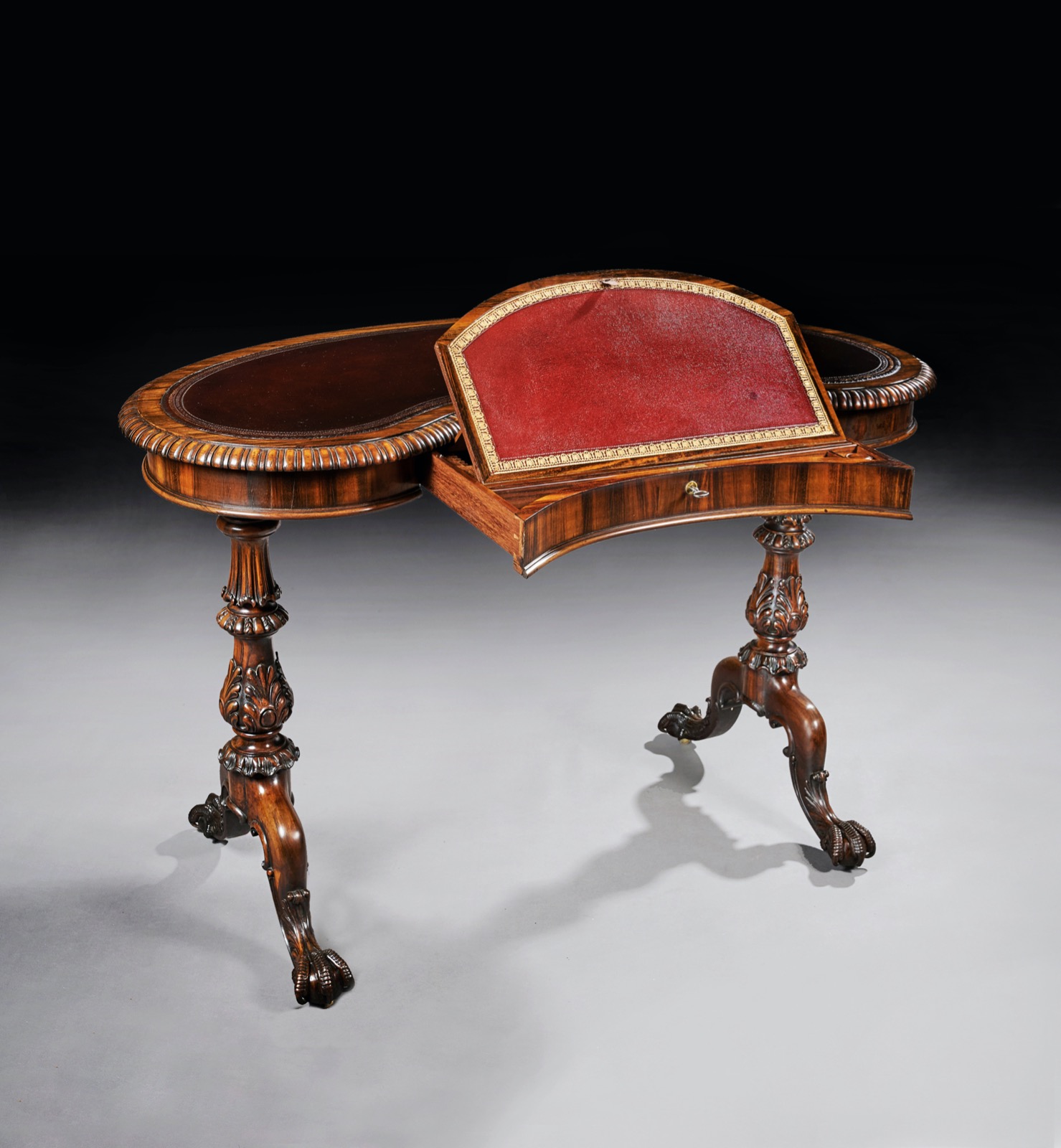 Late Georgian Gillows Gonçalo Alves Kidney Shaped Writing Table