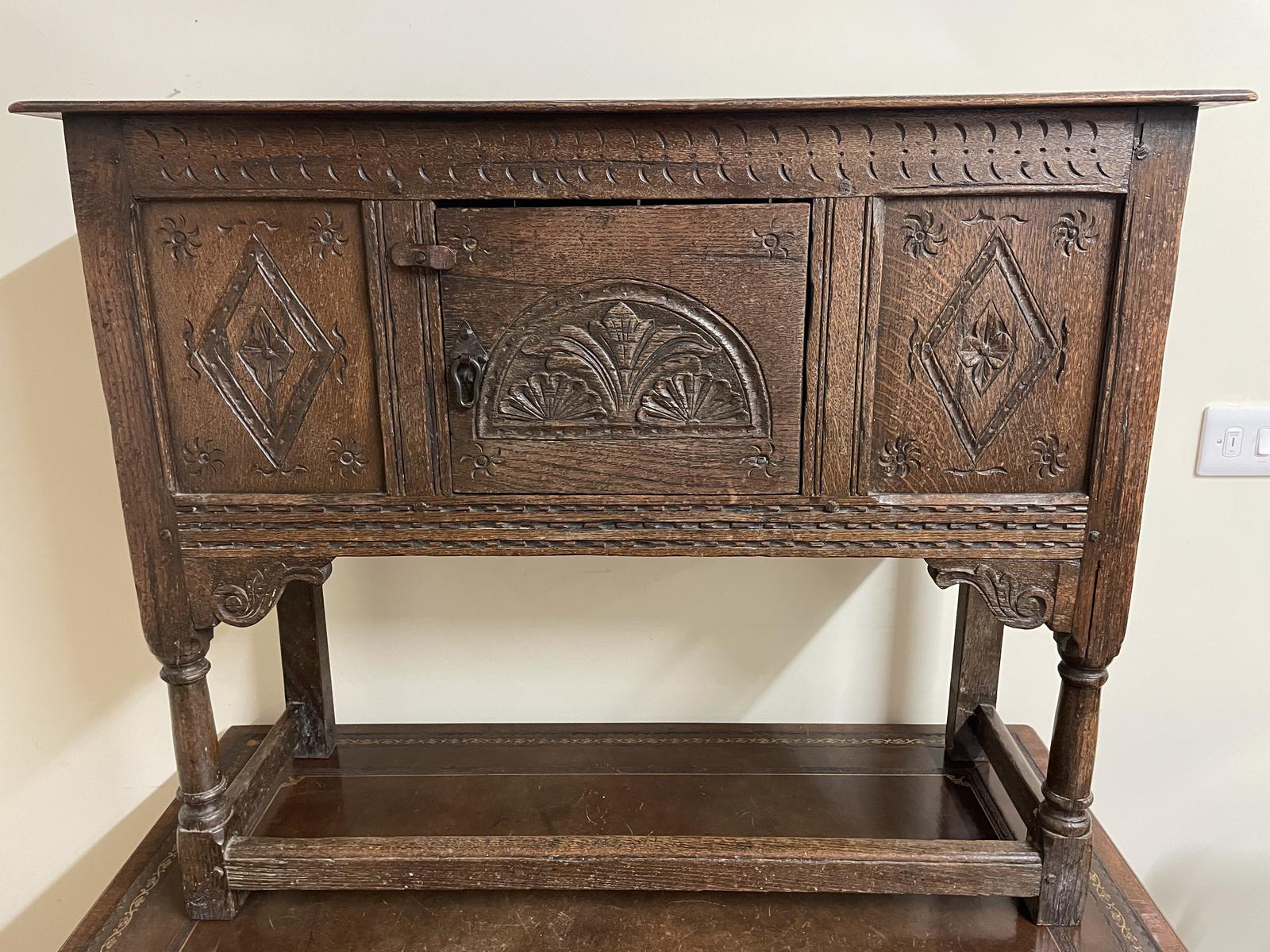 Late Jacobean Rustic Oak Hand Carved Sideboard