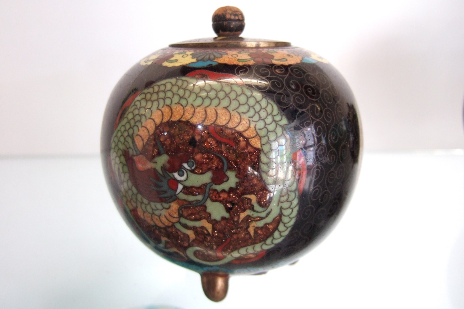 Late Meiji Period Japanese Globular Cloisonne Pot with Lid (1 of 1)