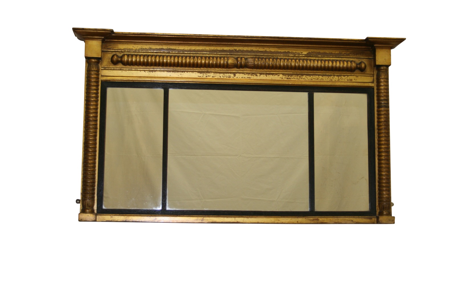 Late Regency Gilt Triple Painted Mirror with Reeded Ebonised Slip