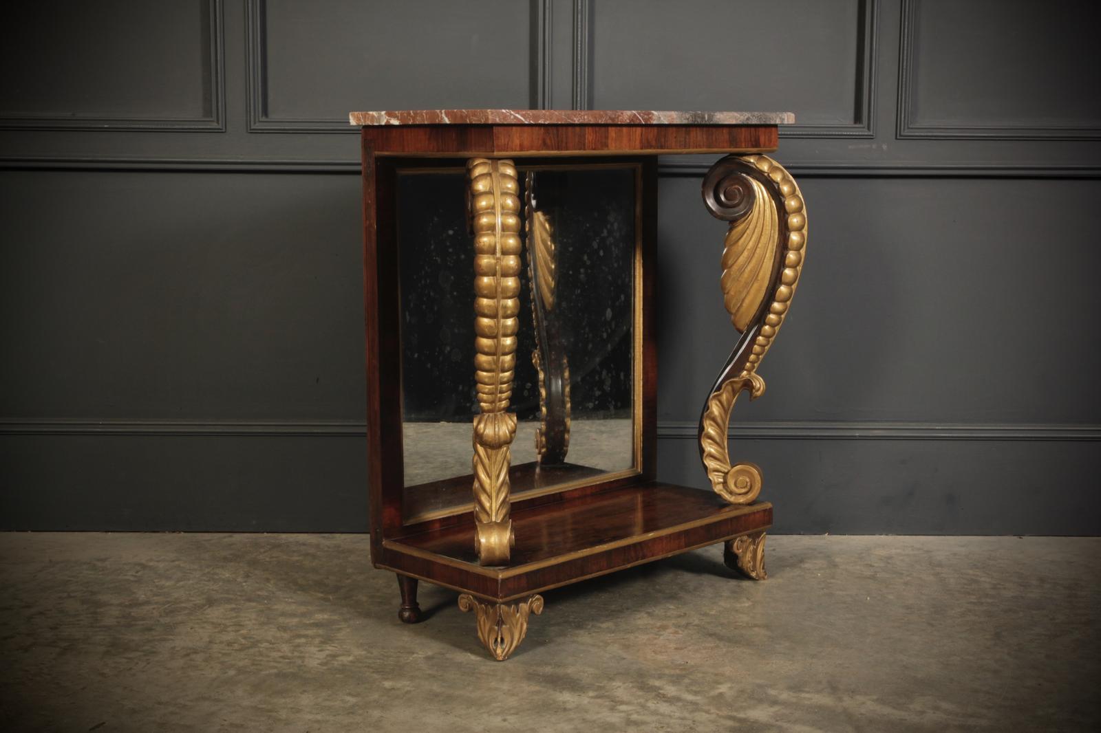 Late Regency Rosewood & Gilt Marble Top Console Table