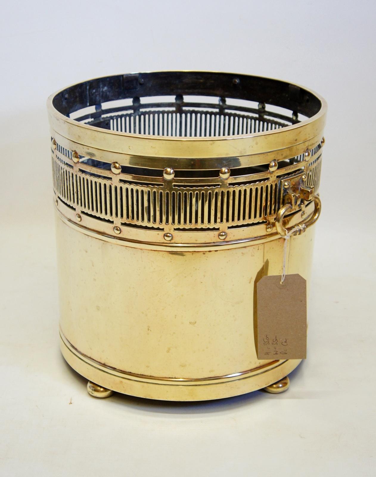 Late Victorian (1897) Pierced Brass Log Bucket or Planter on Brass Feet
