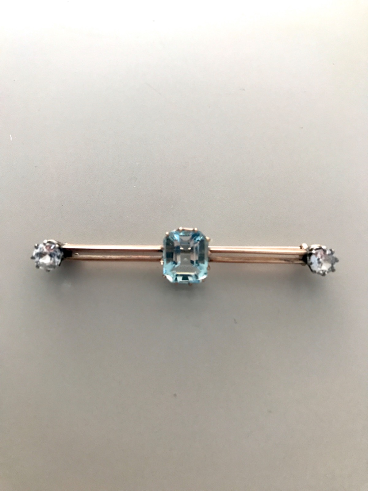 Late Victorian 9ct Silver Aquamarine & White Sapphire Bar Brooch (1 of 7)
