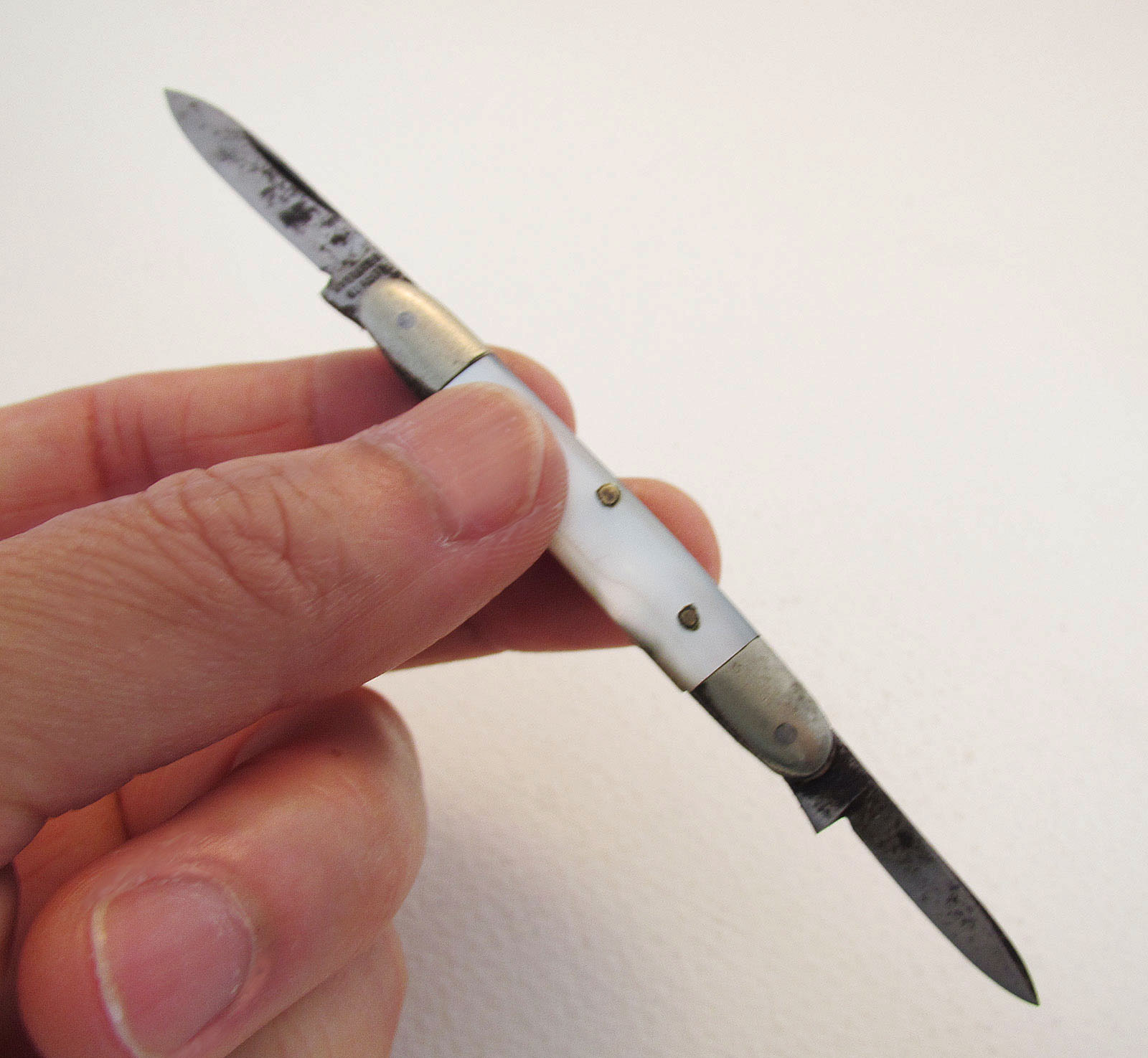 Late Victorian (C1890) Double Folding Pocket Mother of Pearl & Carbon Steel Quill Cutter Pen Knife Small Miniature Penknife Pencil Sharpener. Antique/Vintage