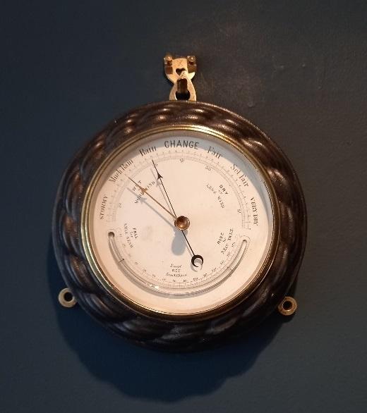 Late Victorian Cast Iron Marine Barometer & Thermometer