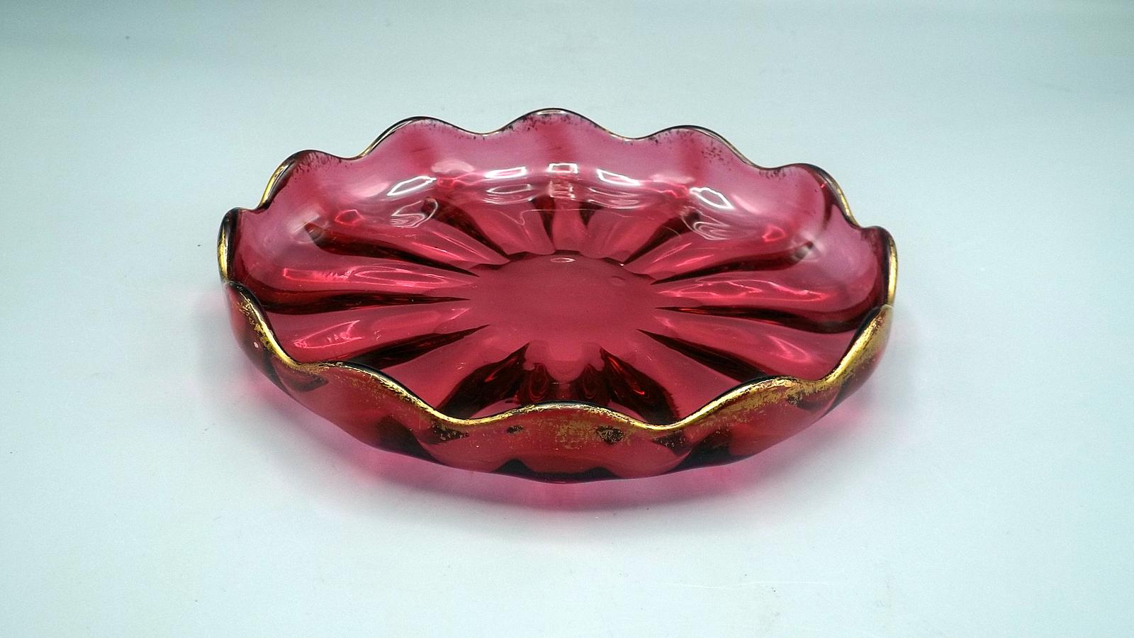 Late Victorian Cranberry Glass Card Tray / Trinket Dish - Val St Lambert