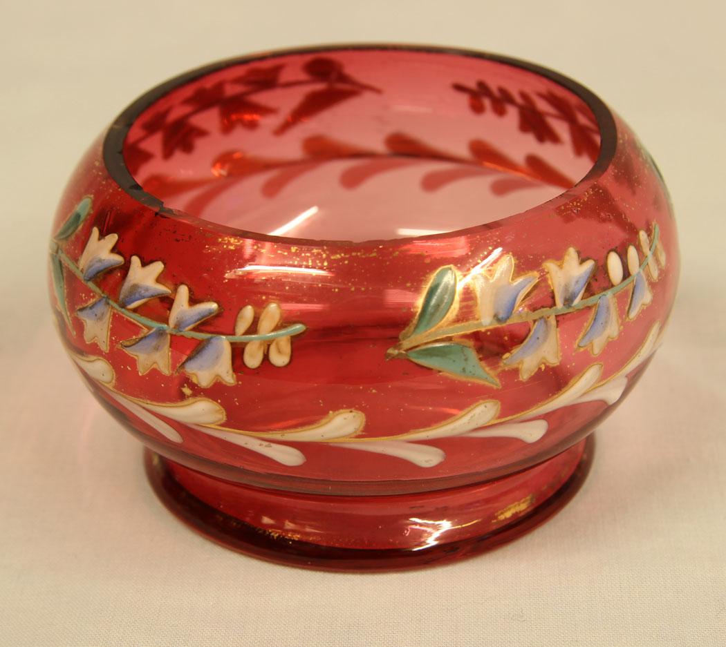Late Victorian Cranberry Glass Decorated Salt