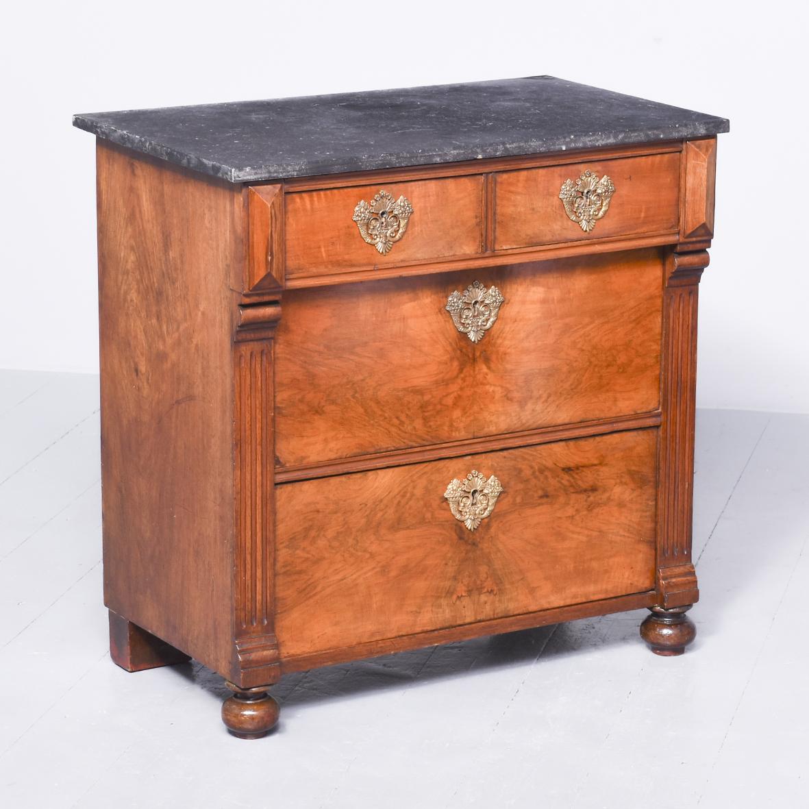 Late Victorian French Marble Top Walnut Chest Of Drawers/Commode (1 of 8)