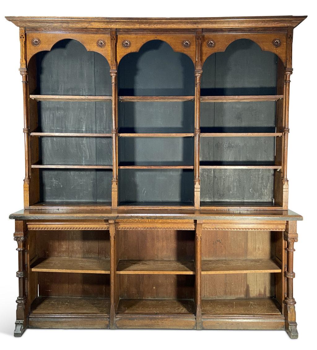 Late Victorian Gothic Revival Oak Bookcase