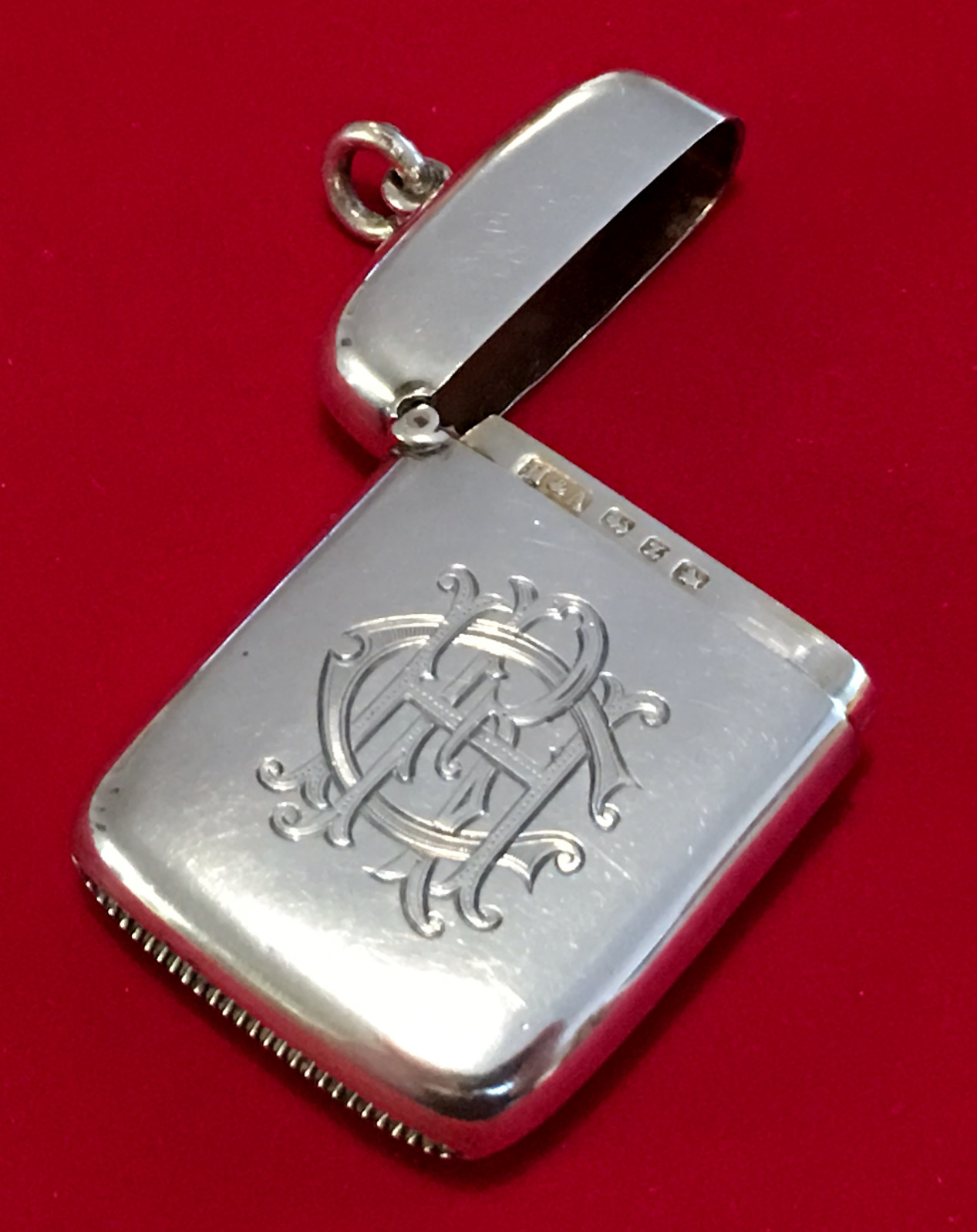 Late Victorian Hallmarked Silver Vesta Case, Birmingham 1899, Horton & Allday