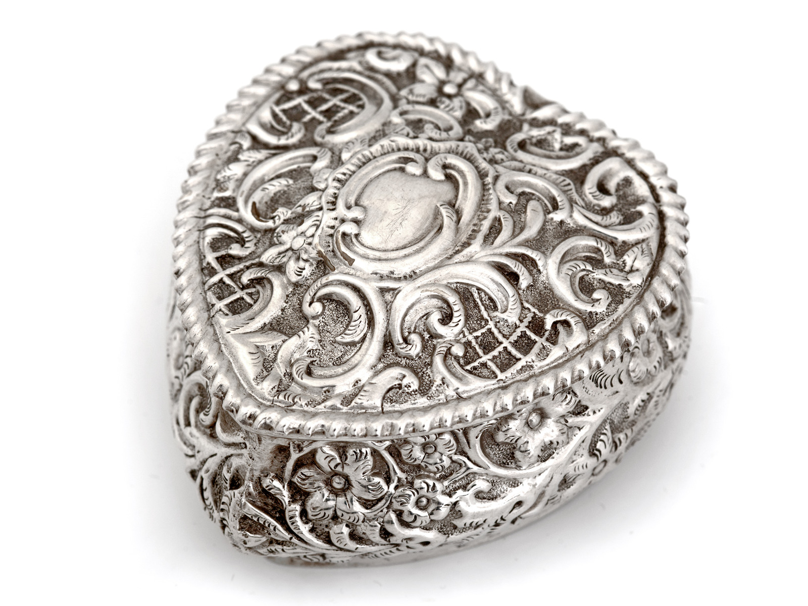 Late Victorian Heart Shaped Silver Box with Gilt Interior (1 of 1)