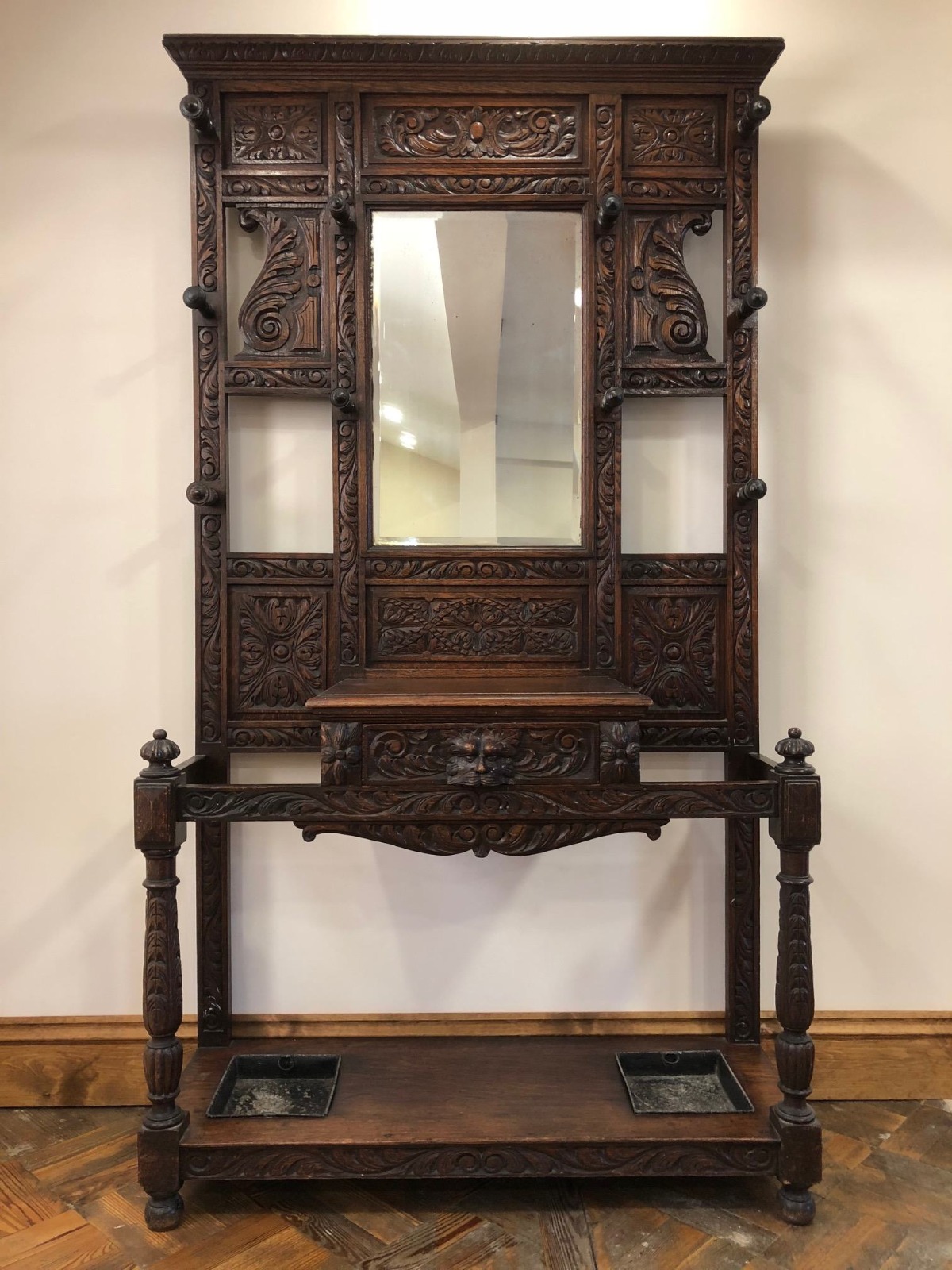 Late Victorian Heavily Carved Oak Mirror Back Hat & Coat Stand / Hall Stand (1 of 1)