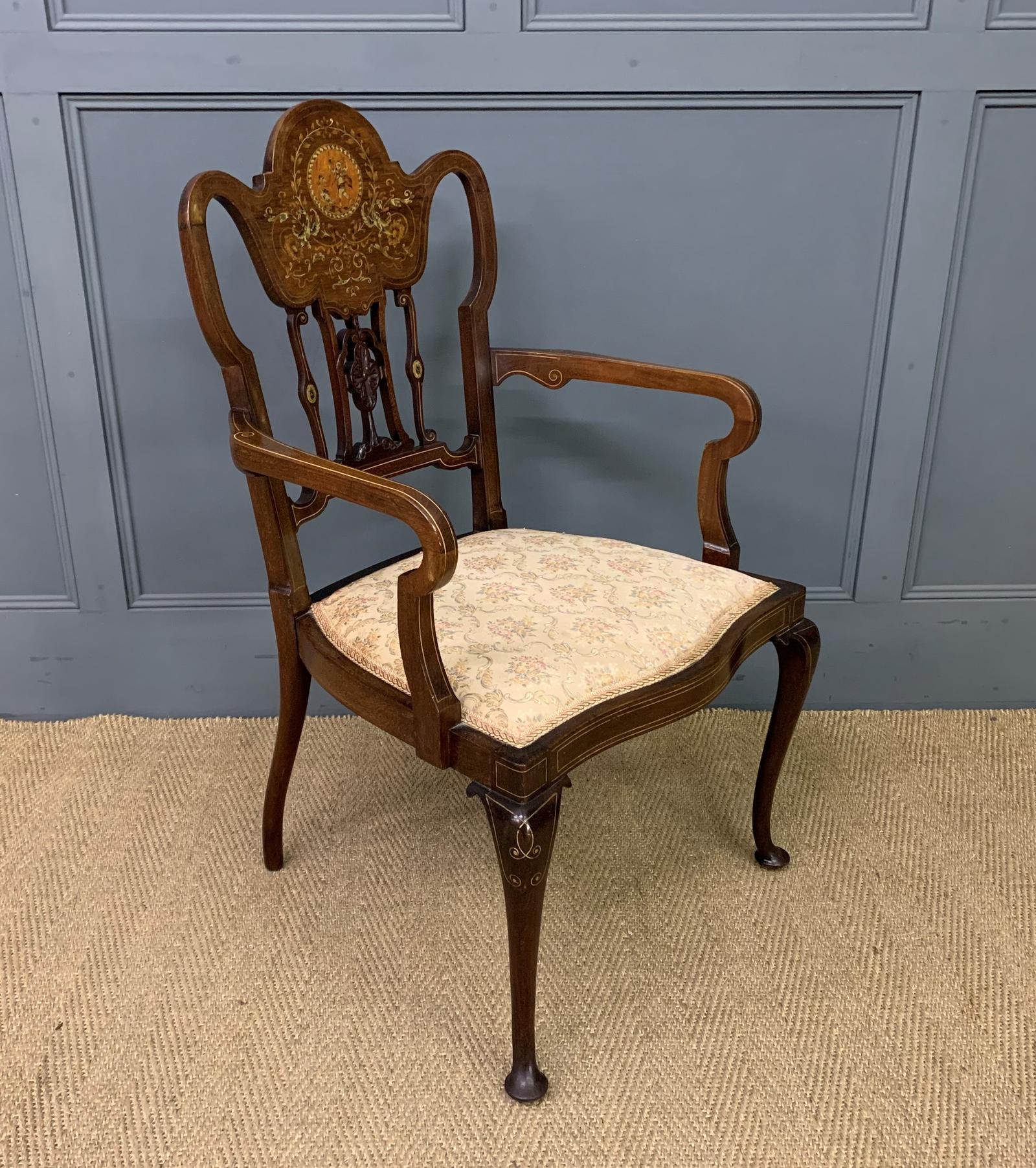 Late Victorian Inlaid Mahogany Armchair c.1900