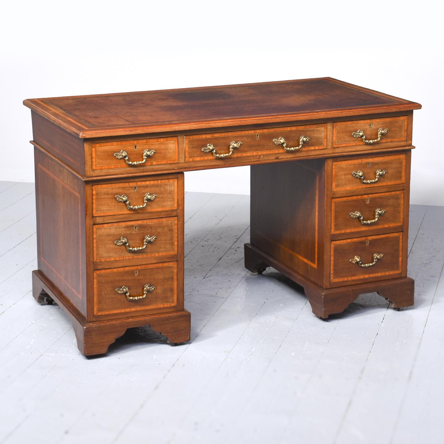 Late Victorian Inlaid Mahogany Kneehole Desk
