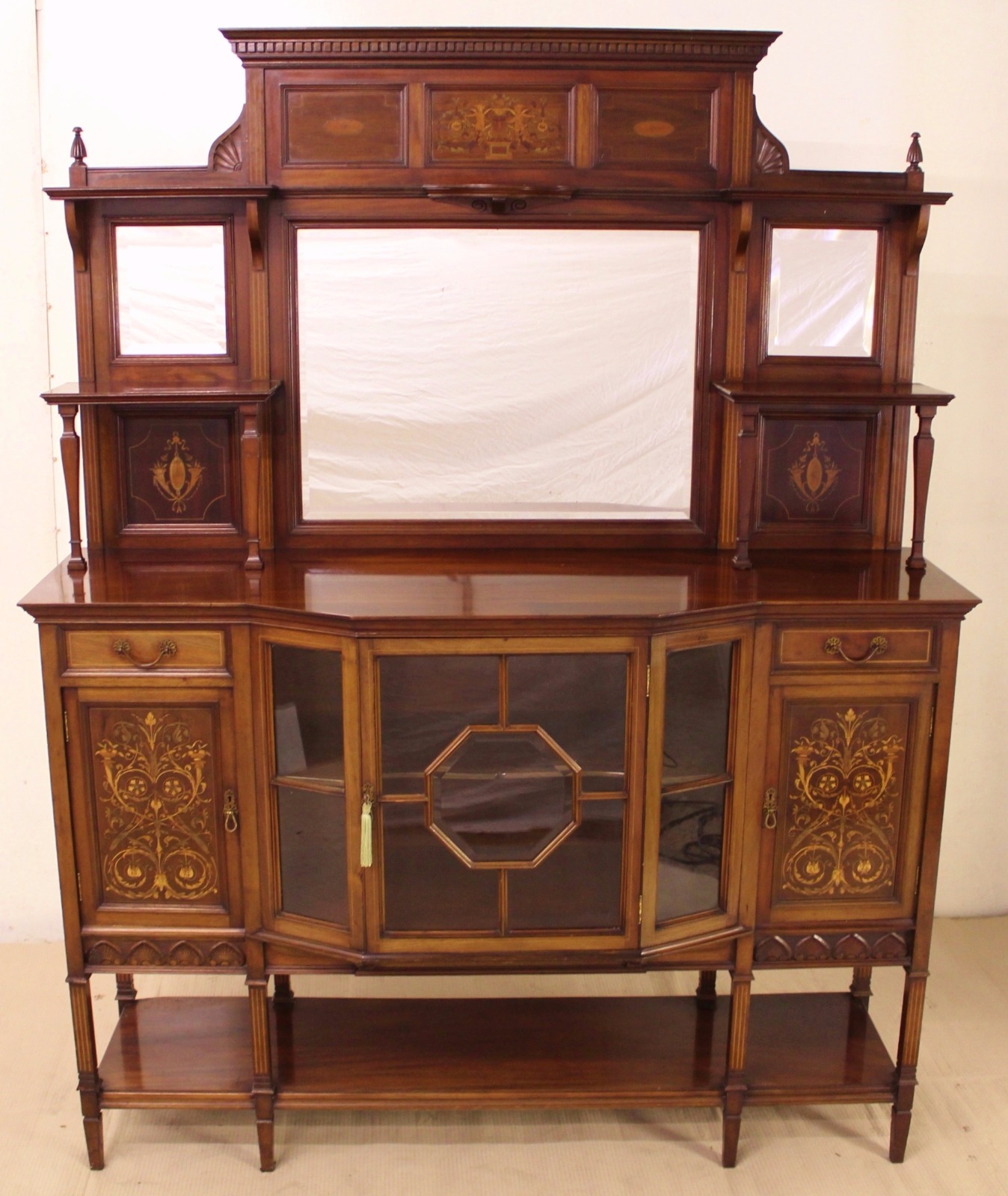 Late Victorian Inlaid Mahogany Parlour Cabinet c.1890