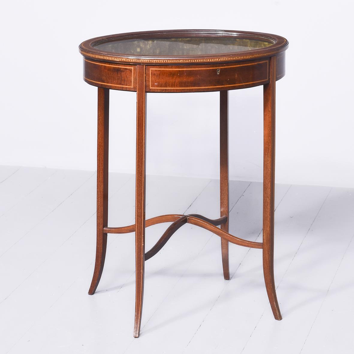 Late Victorian Inlaid Mahogany Sheraton Style Oval Bijouterie Table (1 of 8)