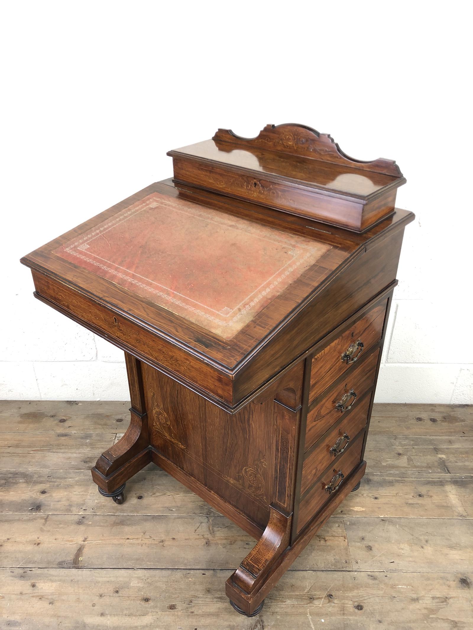 Late Victorian Inlaid Rosewood Davenport Desk