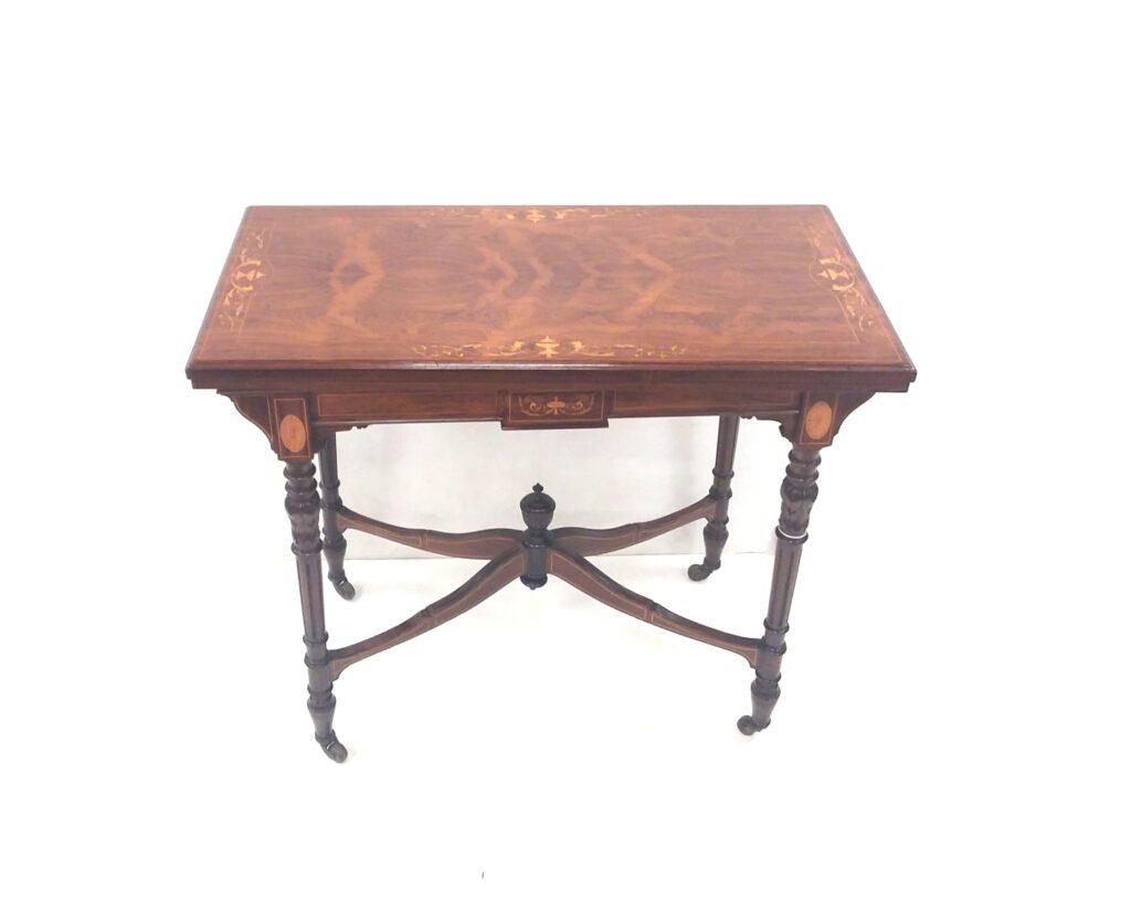 Late Victorian Inlaid Rosewood Fold Over Card Table