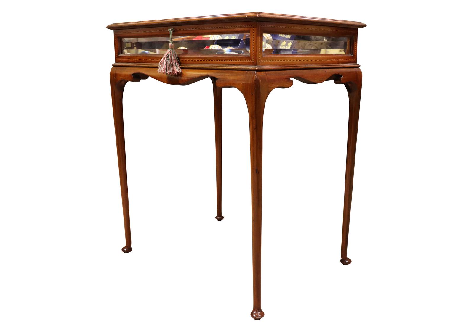 Late Victorian Mahogany Bijouterie Display Table with Bevelled Glass c.1900