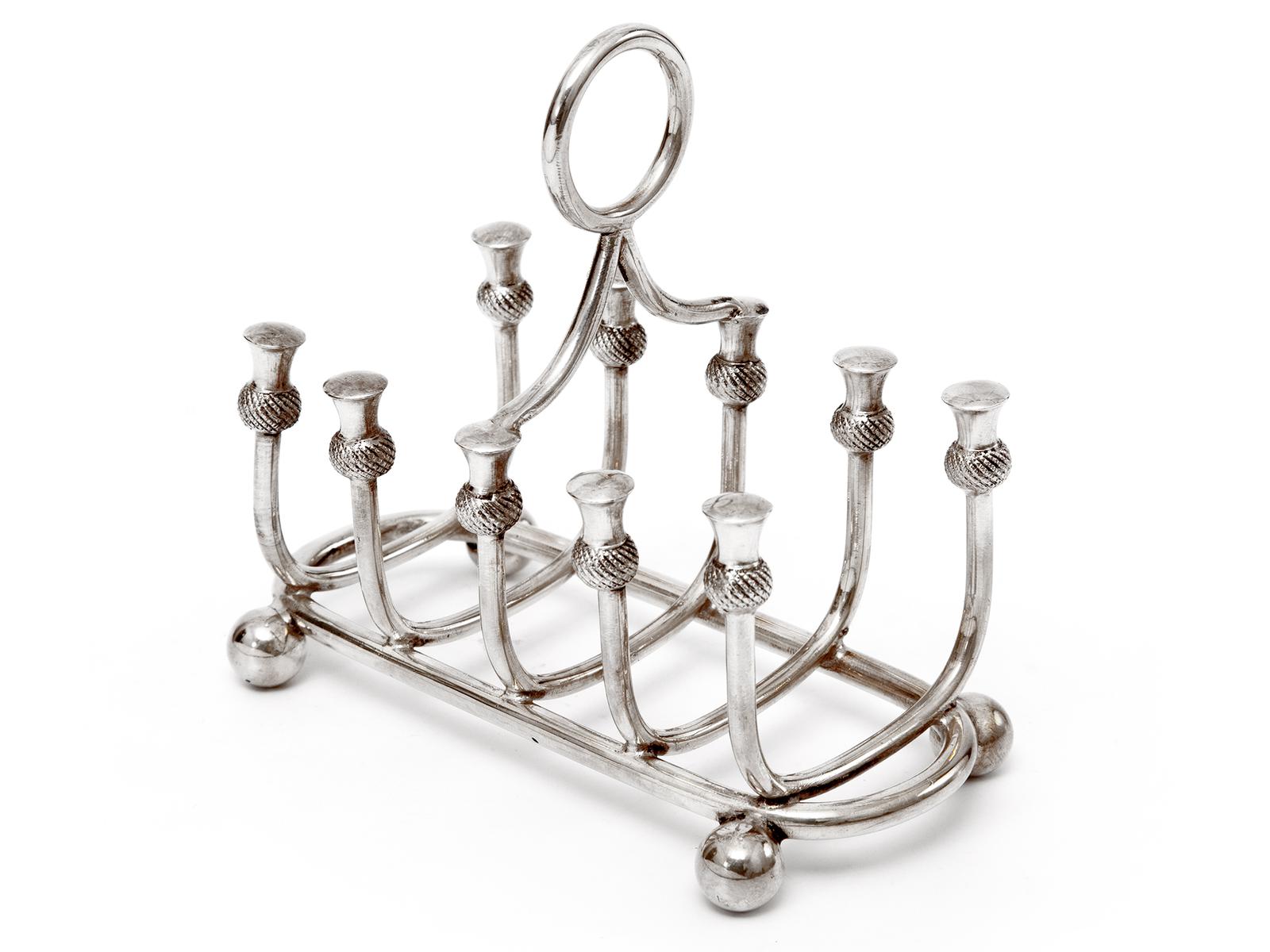 Late Victorian Novelty Silver Plated Toast Rack with Thistle Decoration