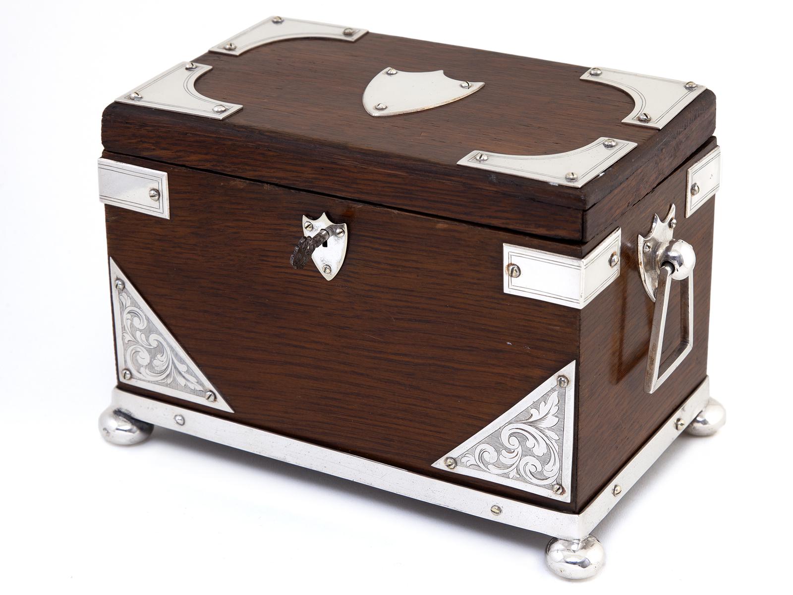 Late Victorian Oak and Silver Plate Rectangular Two Compartment Tea Caddy (1 of 8)