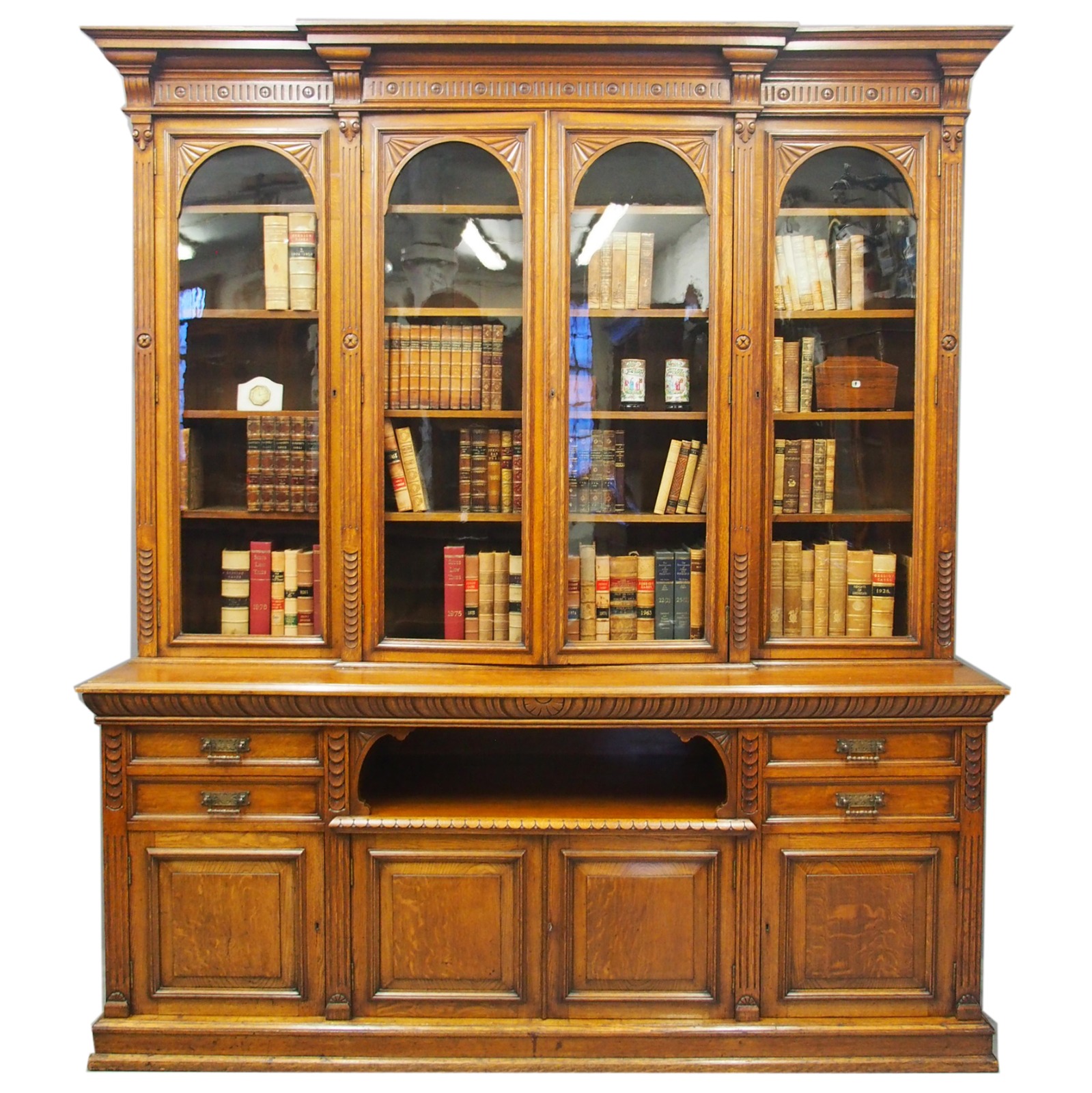 Late Victorian Oak Breakfront Bookcase