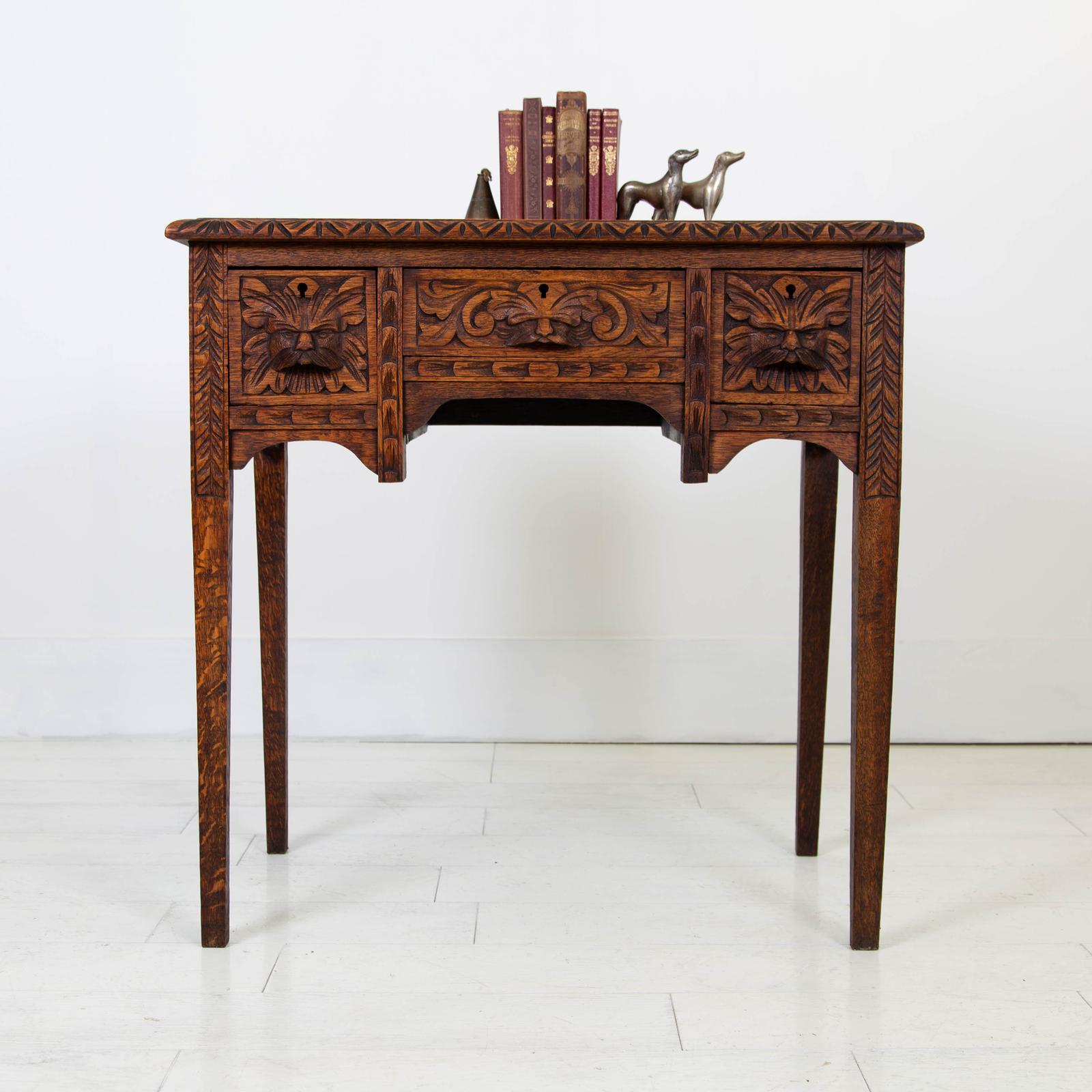 Late Victorian Oak Green Man 3 Drawer Side Table c.1900