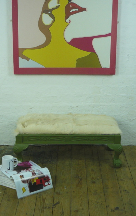 Late Victorian Painted Oak & Goat Skin Stool (1 of 1)