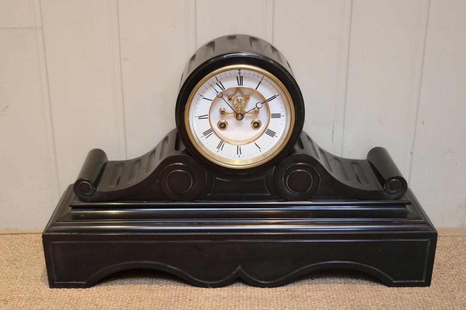 Late Victorian Polished Slate Visible Escapement Mantel Clock