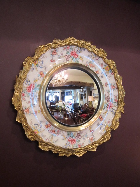 Late Victorian Porcelain & Ormolu Wall Mirror