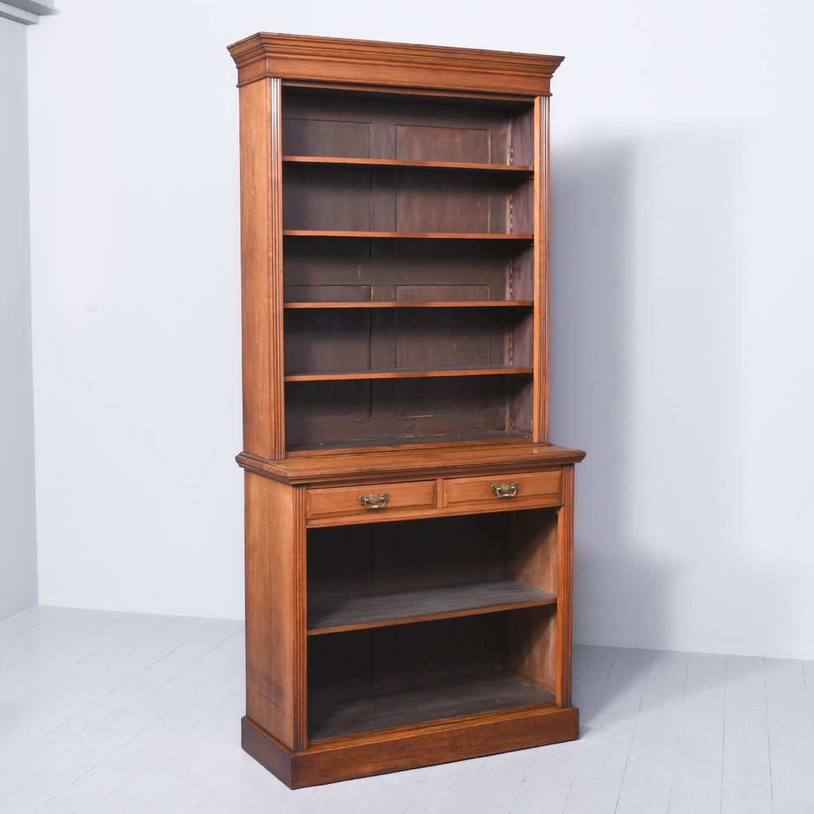 Late Victorian Quality Two-Part Walnut Open Bookcase