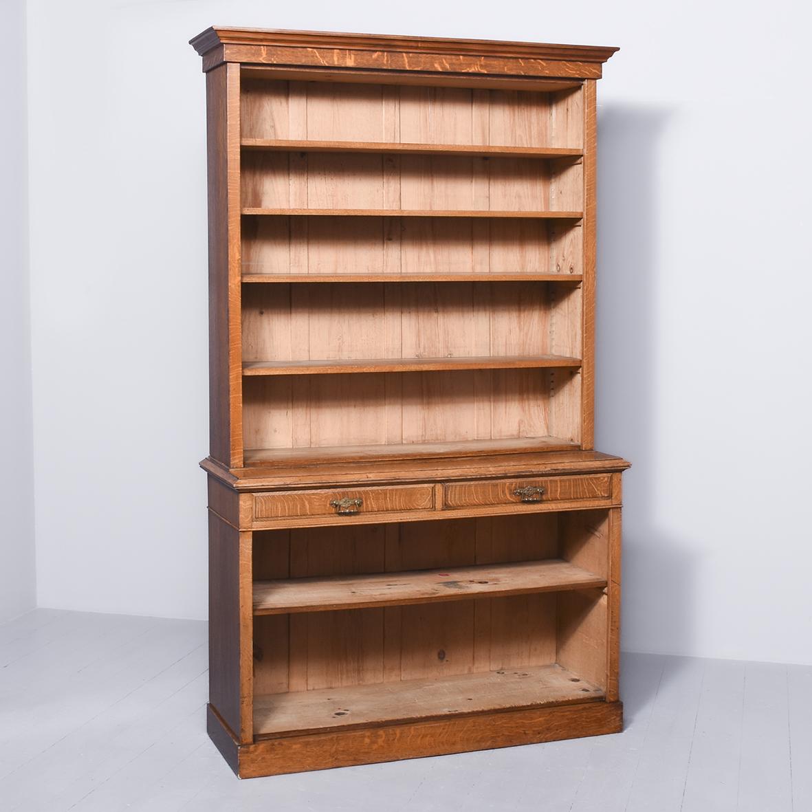 Late Victorian Quarter-cut Oak Two-part Open Bookcase