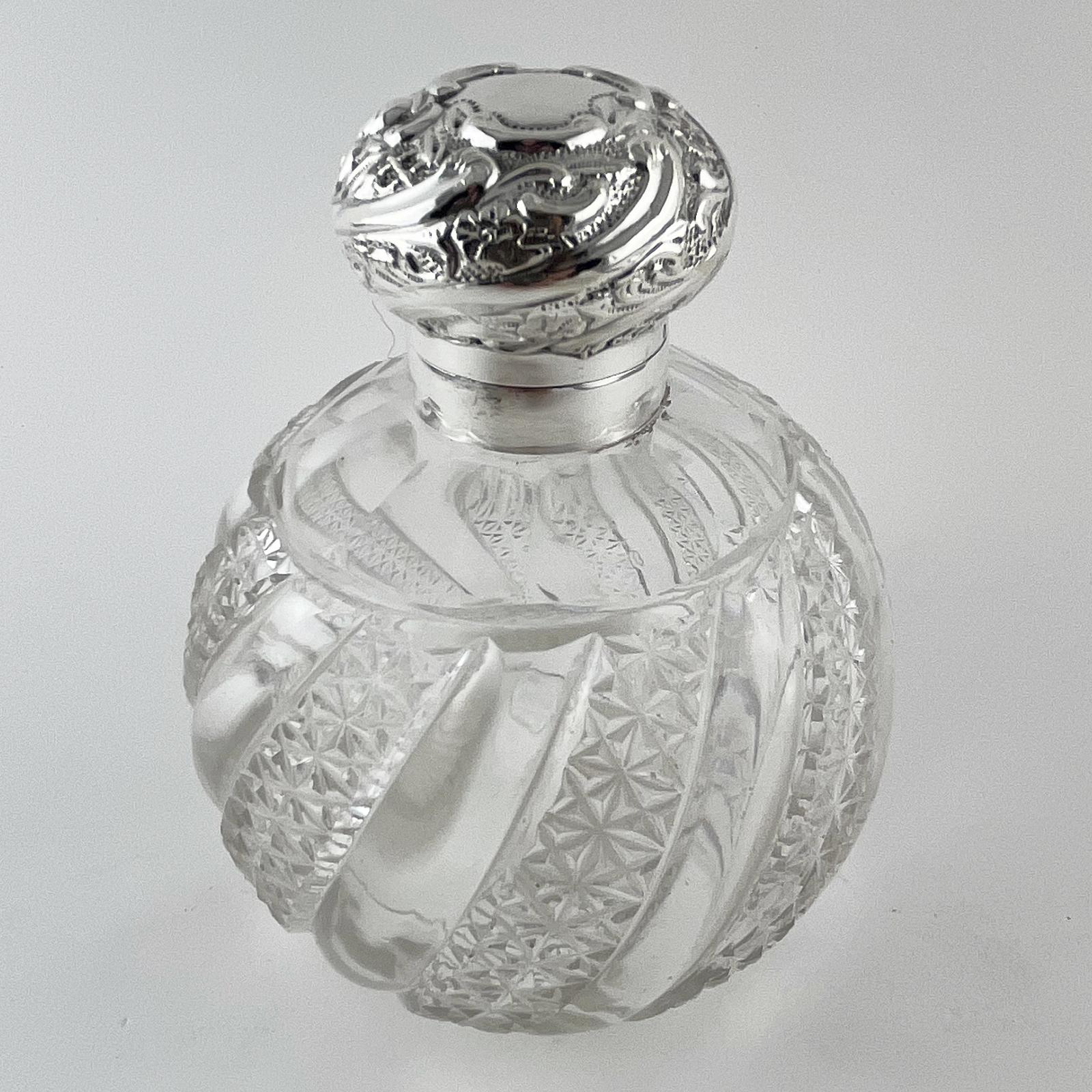 Late Victorian Sterling Silver & Cut Glass Perfume Bottle (1 of 5)
