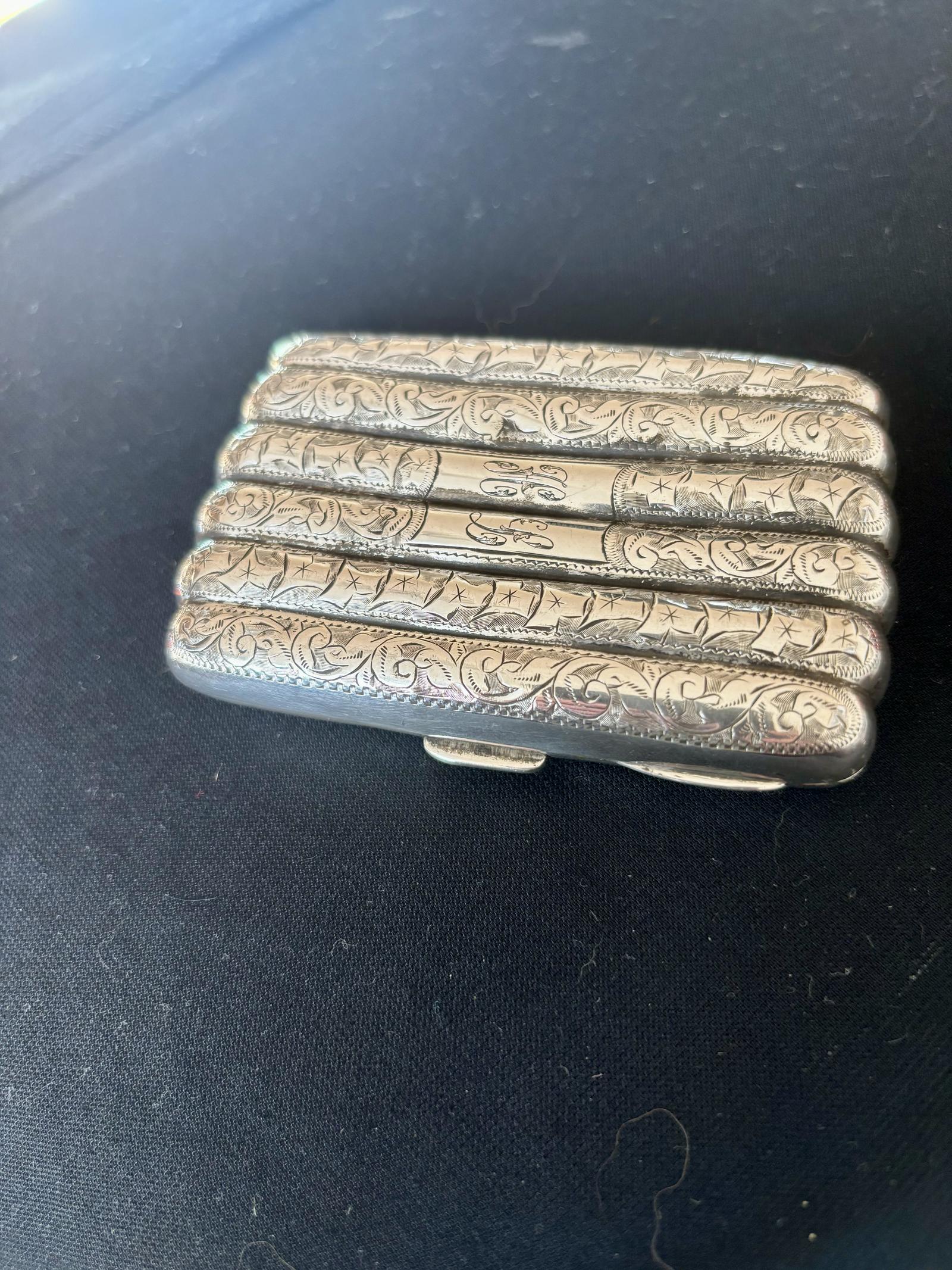 Late Victorian Sterling Silver Ribbed Cigarette / Cigar Case 1900