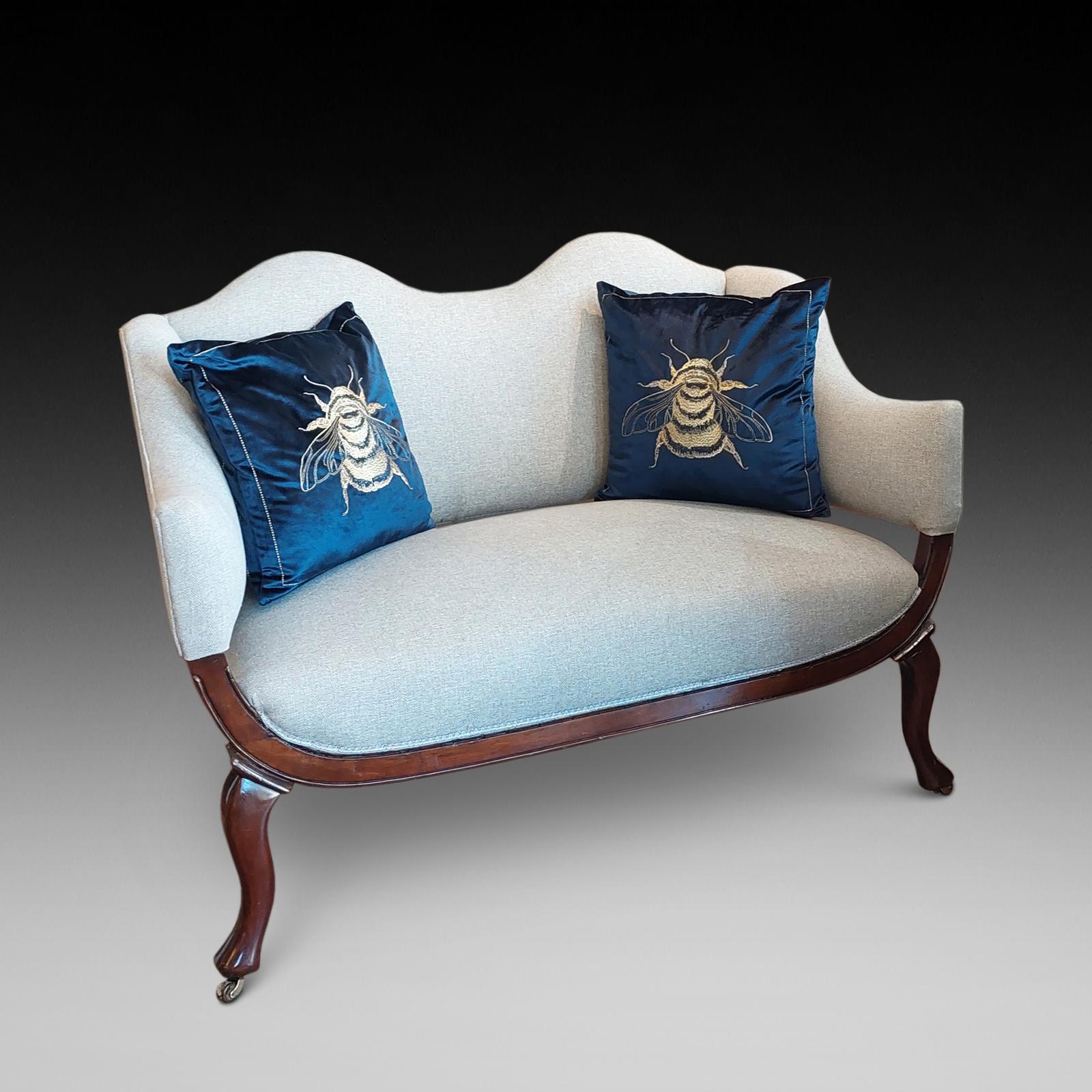 Late Victorian Upholstered Mahogany Camel Back Settee