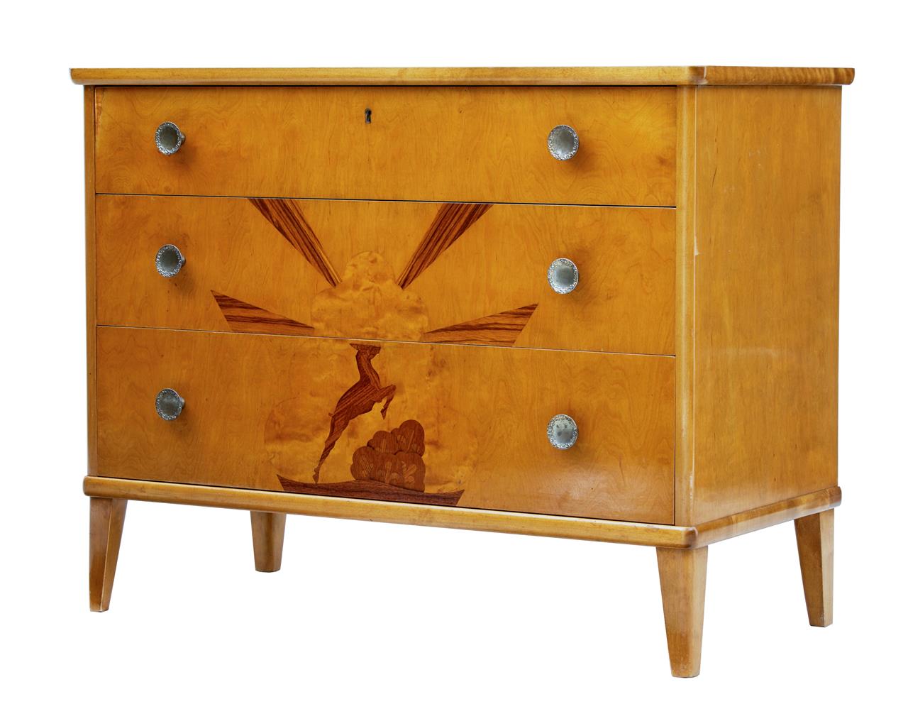 Later Deco Swedish Birch Inlaid Chest Of Drawers (1 of 5)