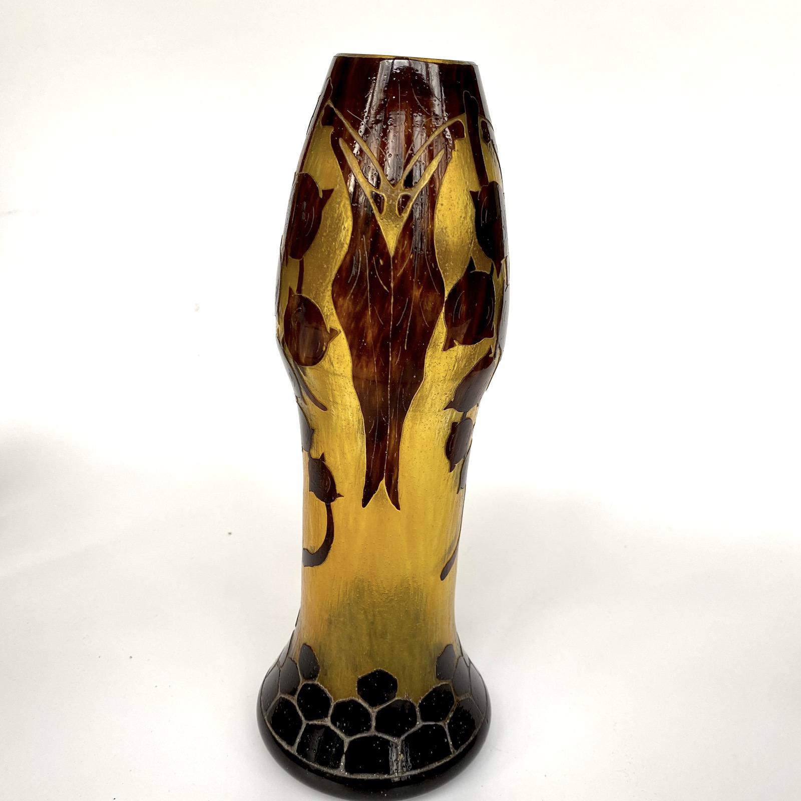 Le verre français acid etched glass vase