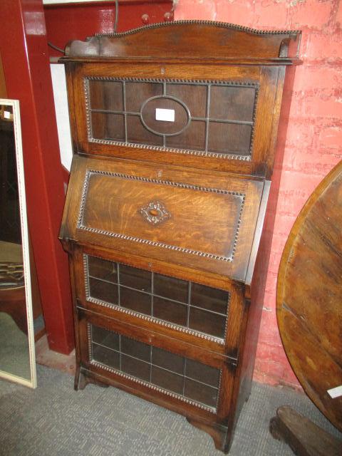 Leaded Glass Oak Bureau Bookcase