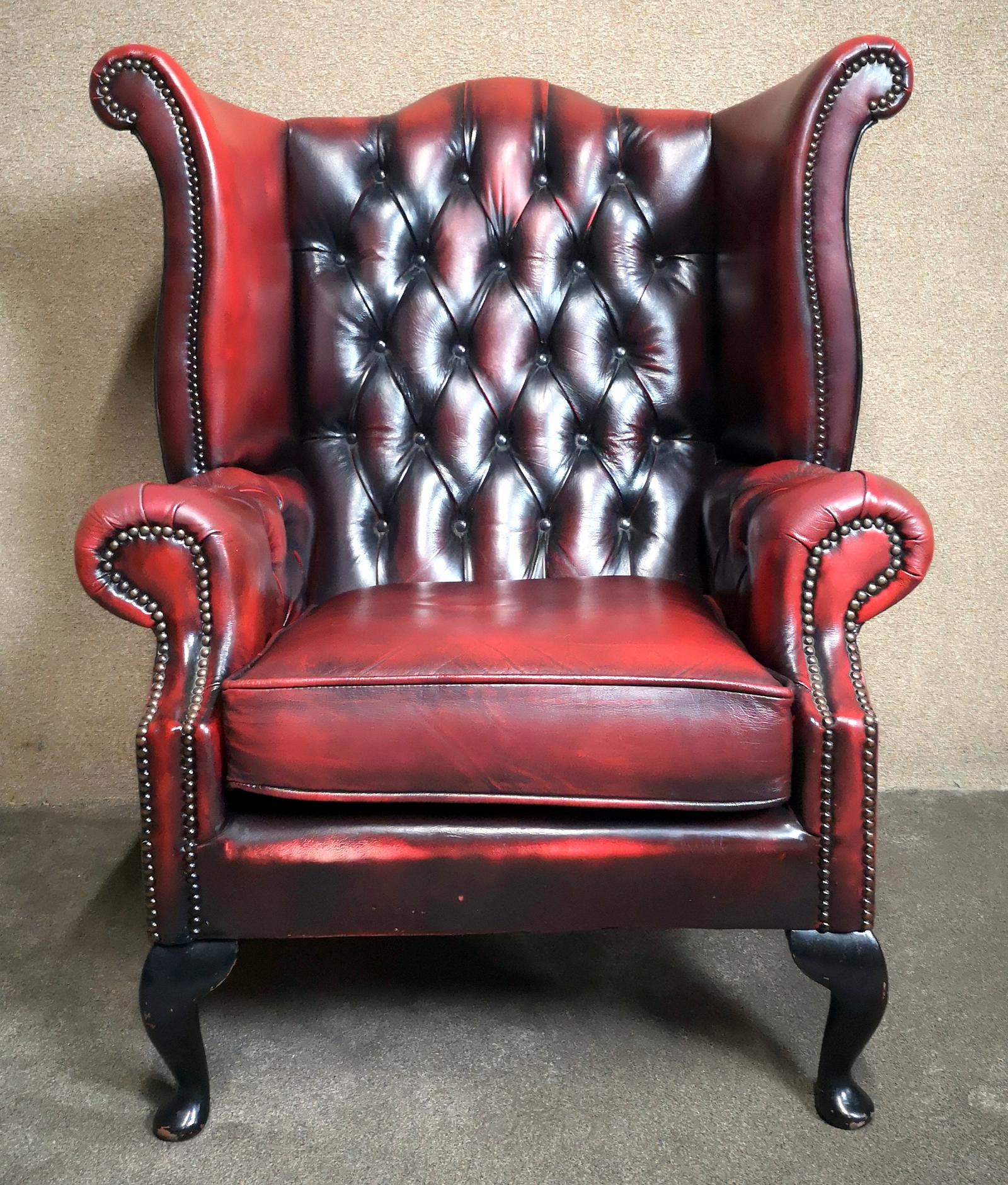 Leather Chesterfield Queen Anne Style High Back Wing Chair