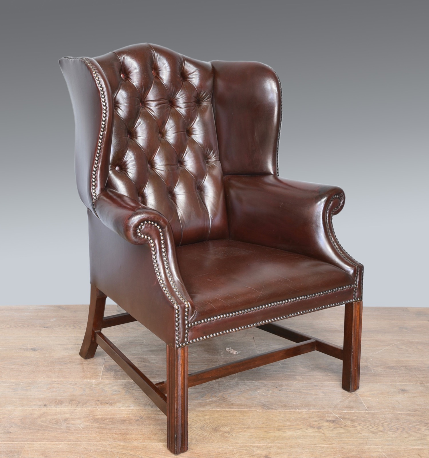 Leather Deep Buttoned Wing Chair c.1930