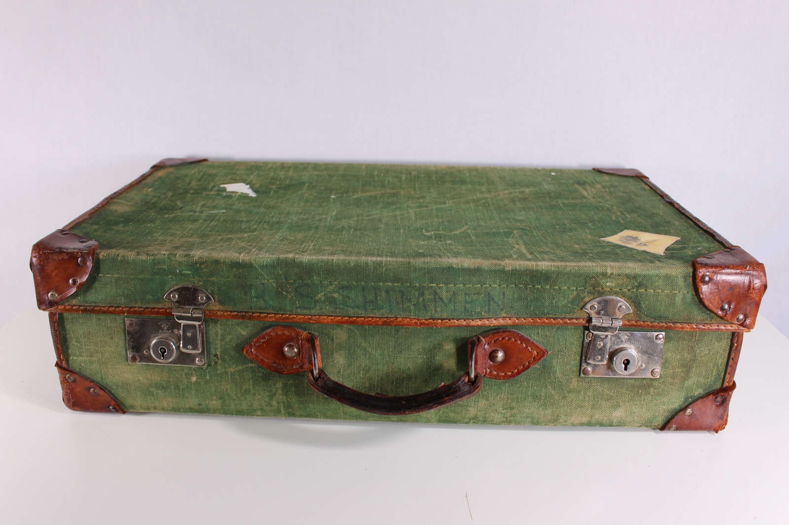 Leather & Green Canvas DMOB Suitcase