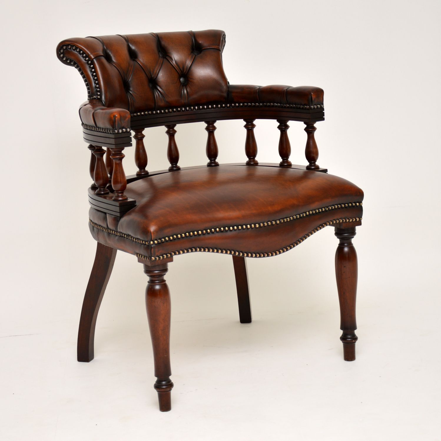 Leather & Mahogany Captains Desk Chair (1 of 1)