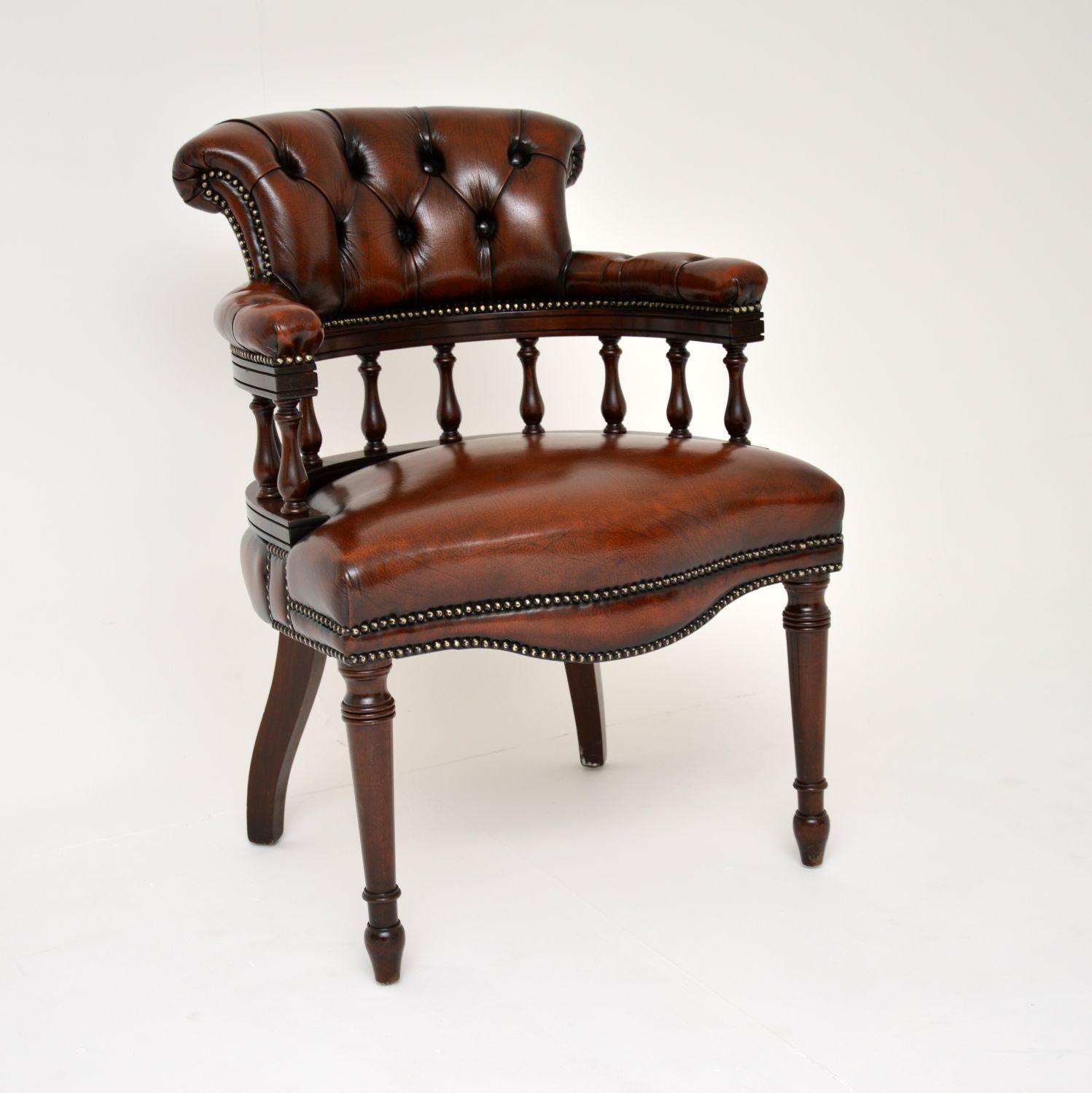Leather & Mahogany Captains Desk Chair c.1930 (1 of 9)