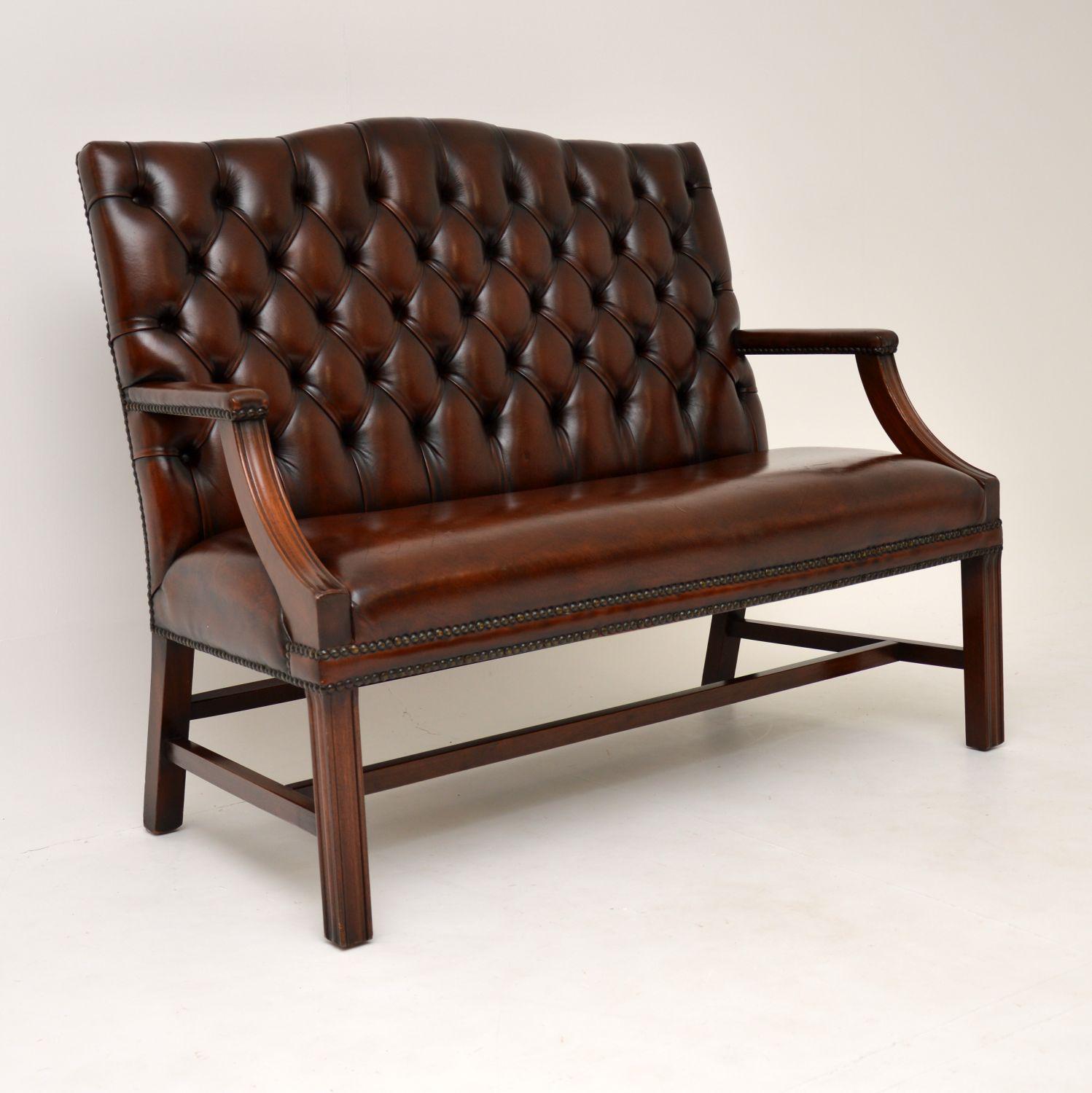 Leather & Mahogany Chippendale Style Sofa