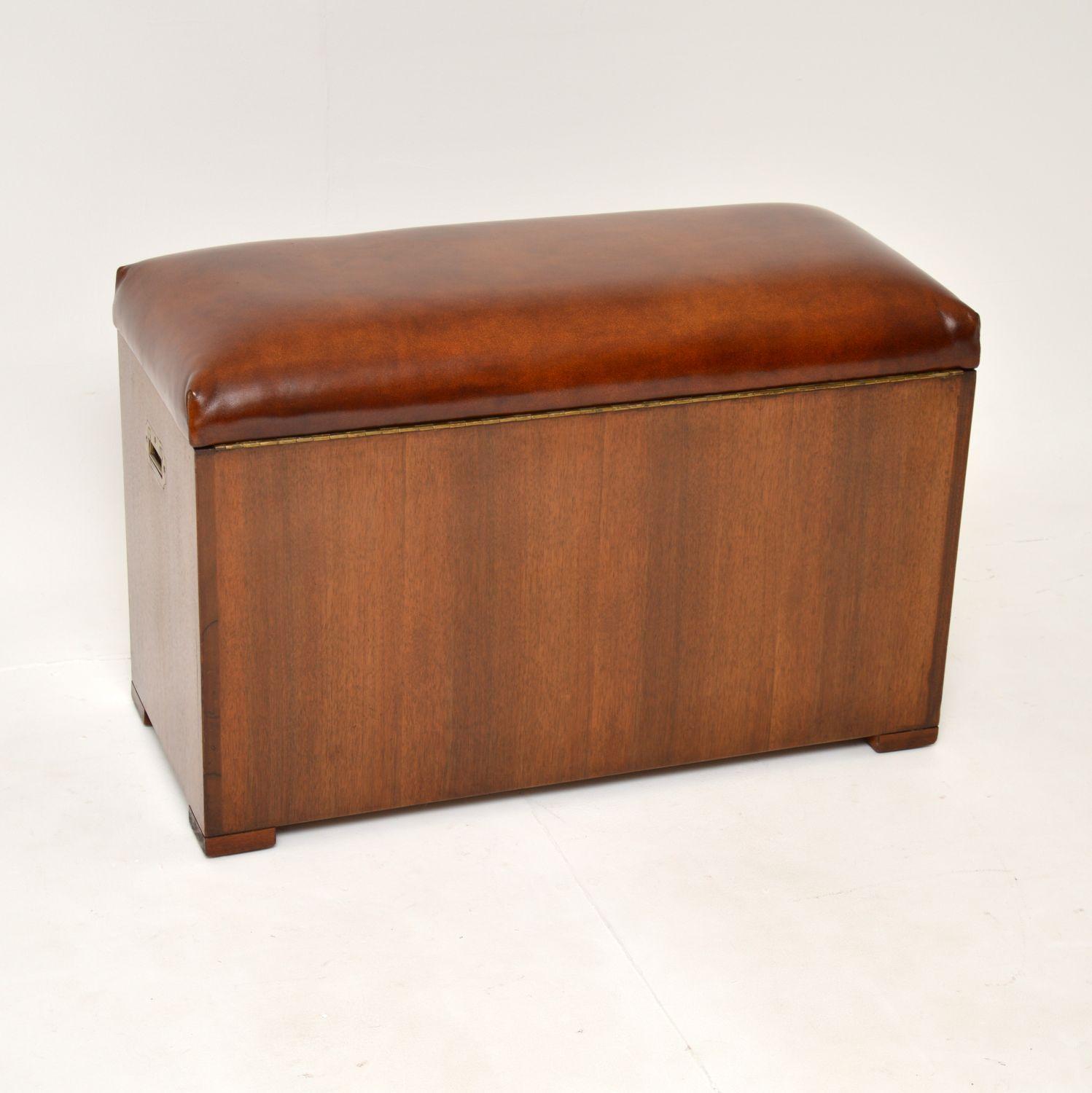 Leather & Mahogany Ottoman Trunk (1 of 9)