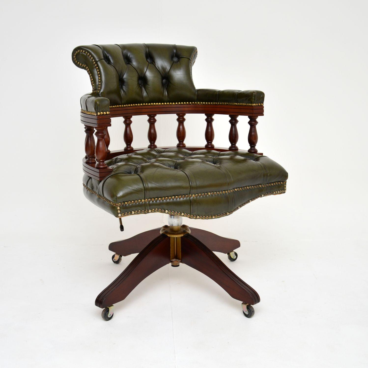 Leather & Mahogany Swivel Captains Desk Chair (1 of 10)