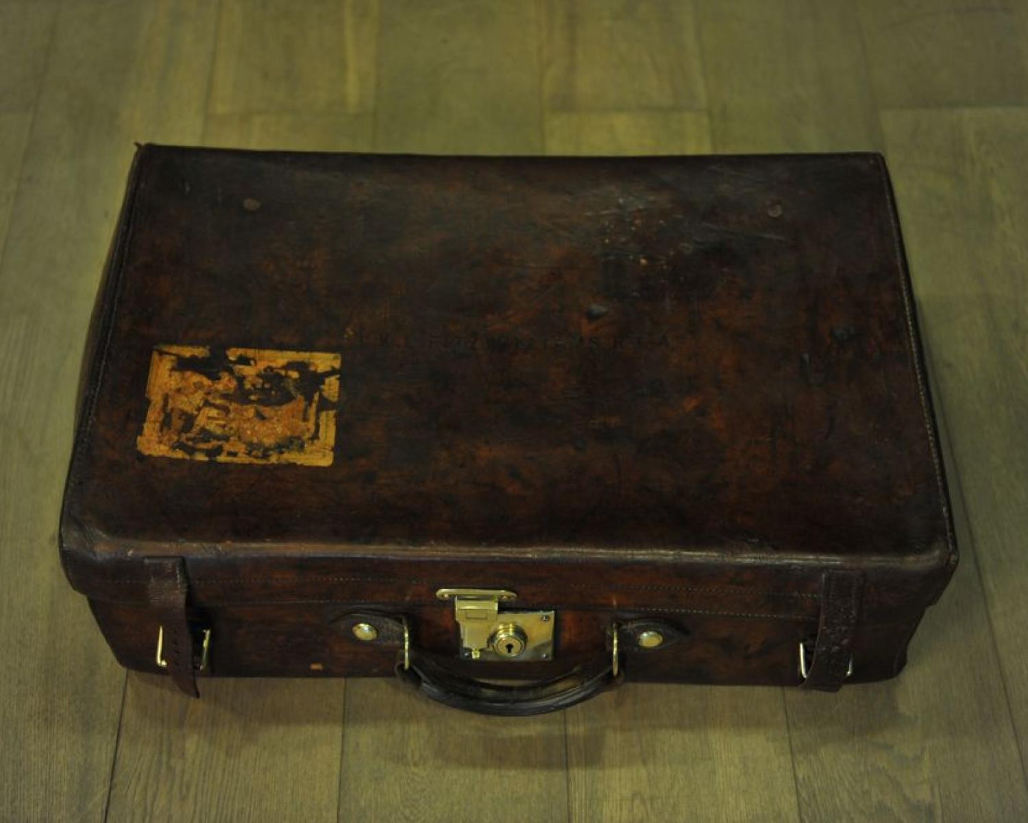 Leather suitcase with two buckles