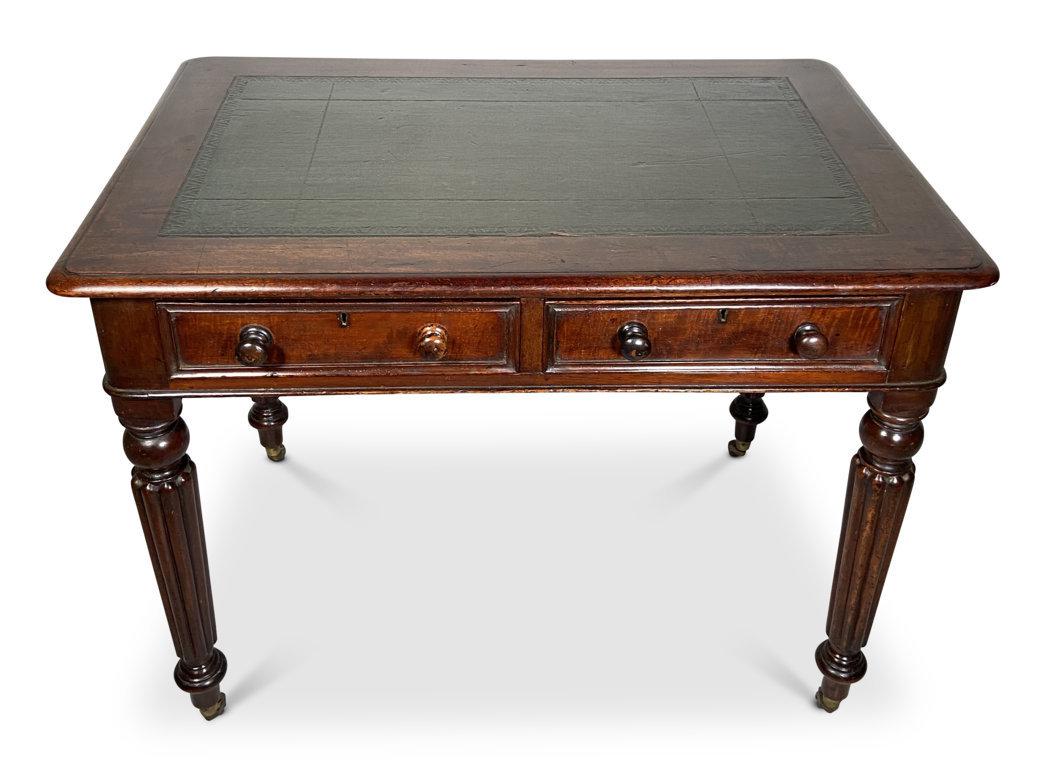 Leather Topped Mahogany Writing Table on Reeded Tapered Legs