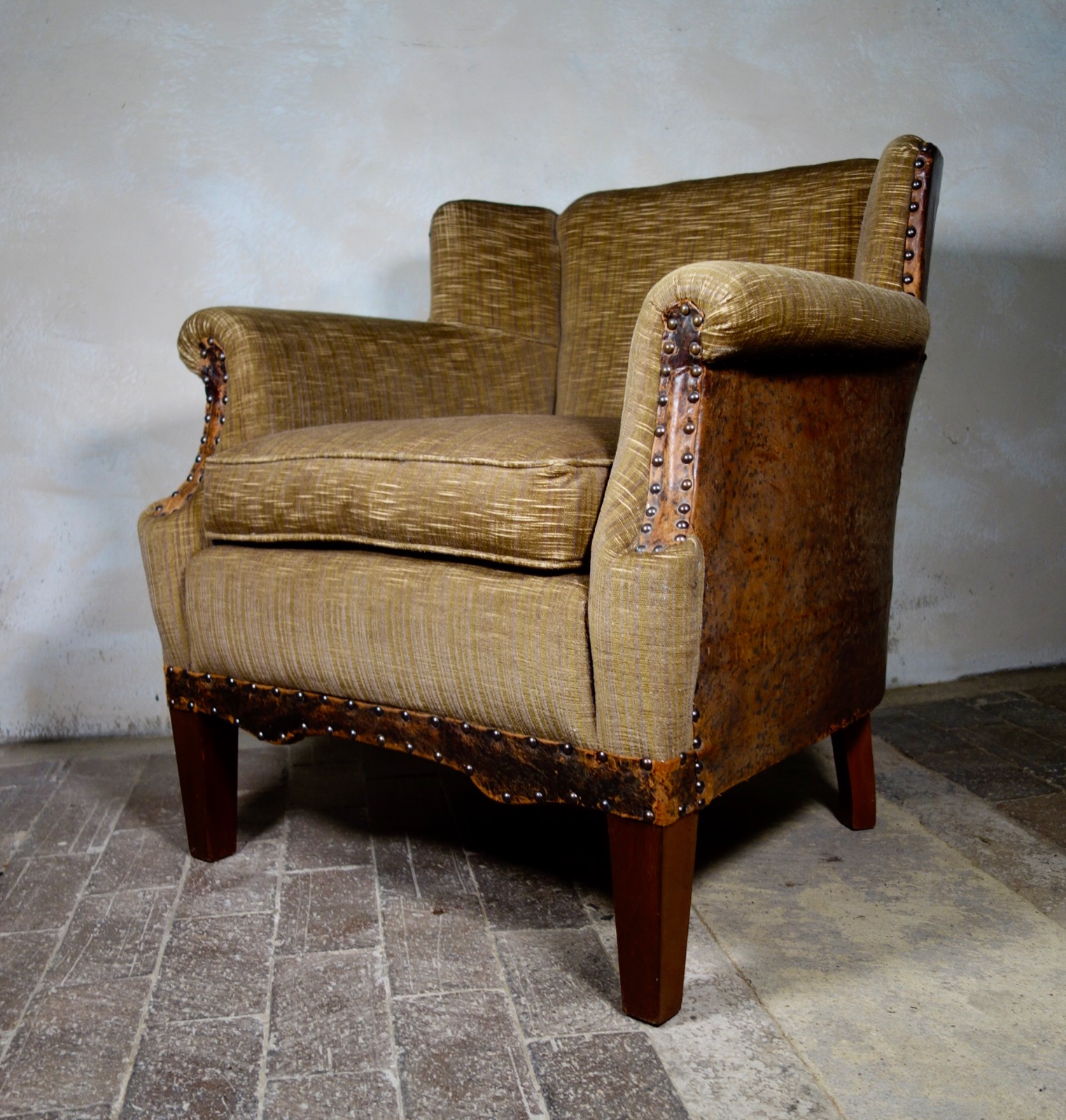 Leather & Velvet Dutch Wingback Chair