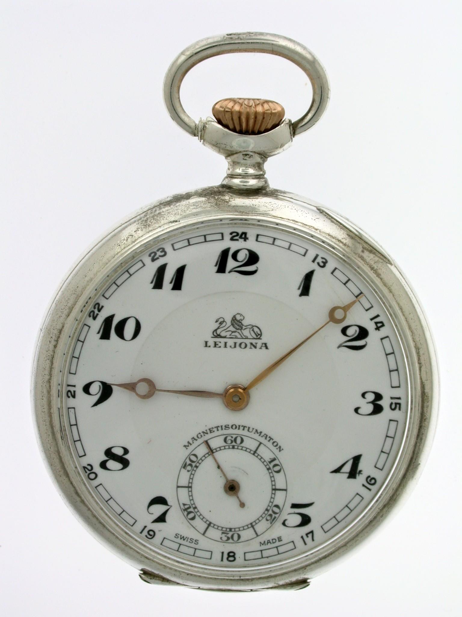 Leijona Silver Open Face Pocket Watch Swiss 1930